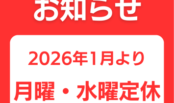 誠に勝手ながら、上記の定休日と変更させて頂きます。お客様のご理解とご協力のほどよろしくお願いいたします。…